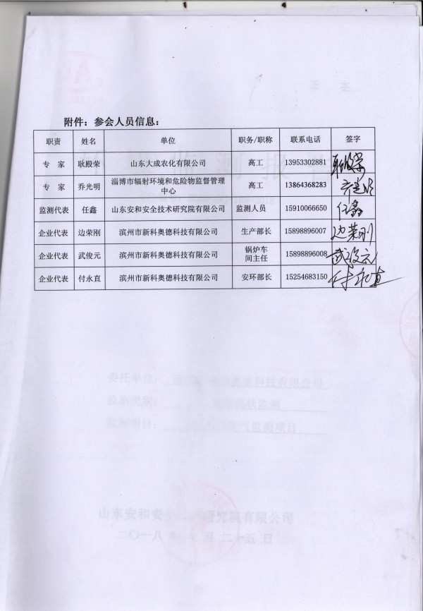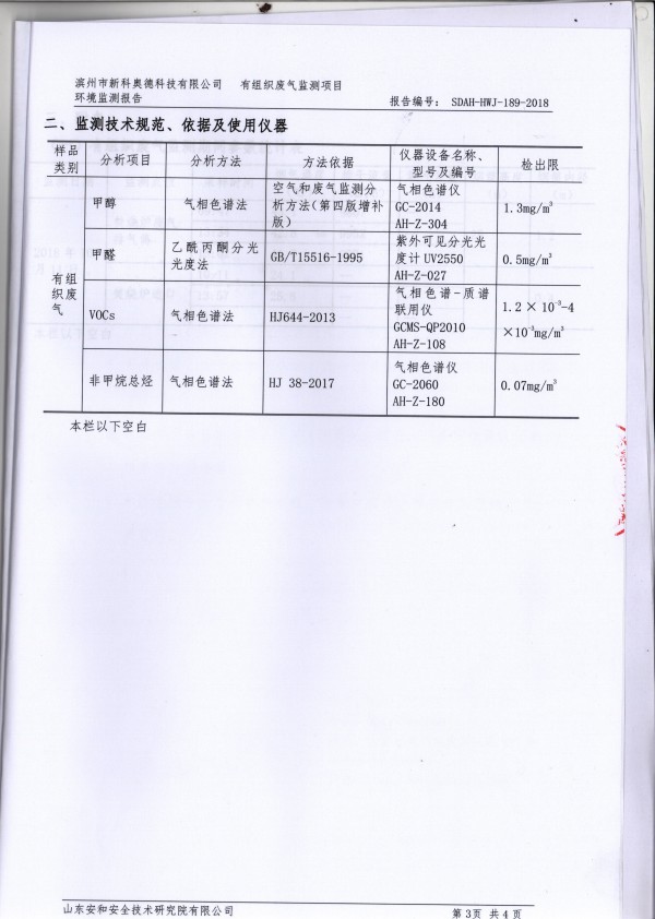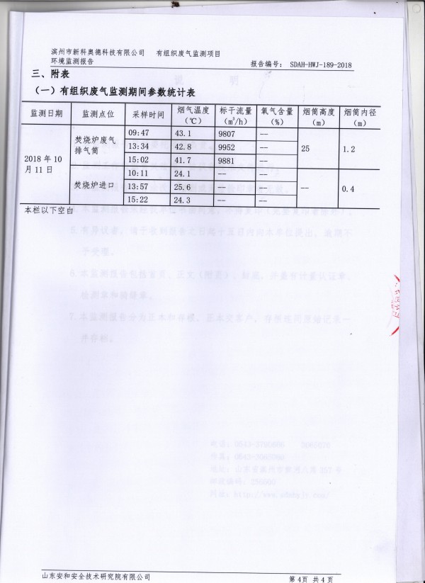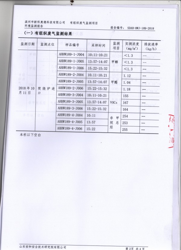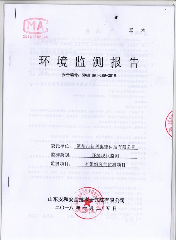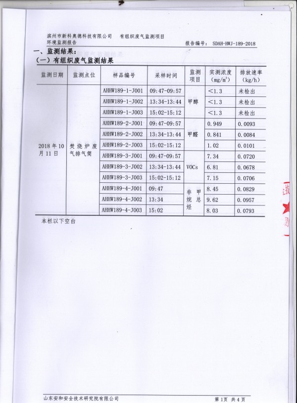 濱州市新科奧德科技有限公司有組織廢氣監(jiān)測項目檢測報告公示